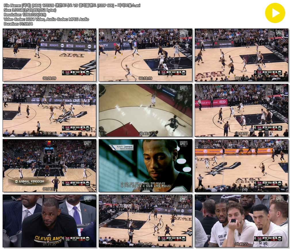 [국내] [NBA] 170328 샌안토니오 VS 클리블랜드 [720P 60F]/
