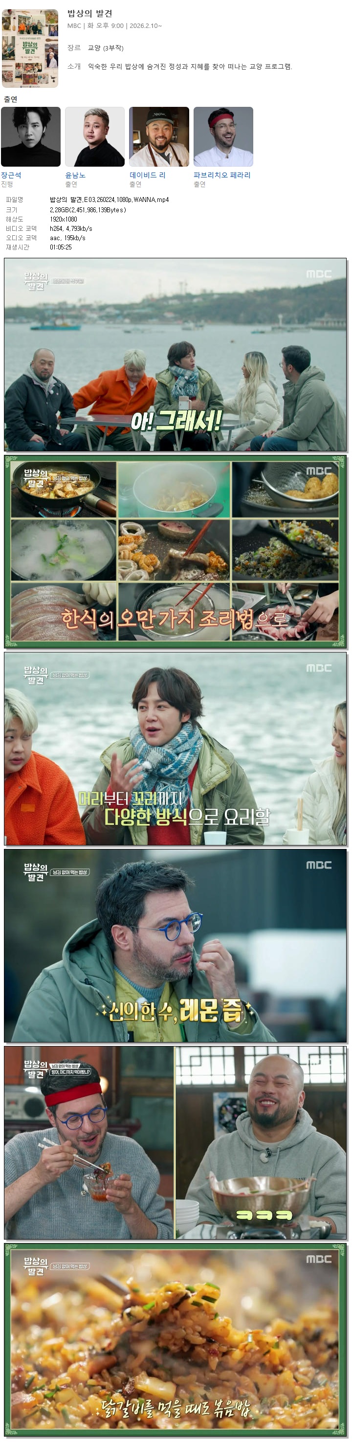 [MBC] 밥상의 발견.E03.260224.1080p.WANNA[장근석, 윤남노]