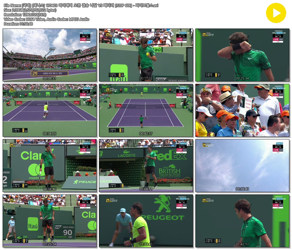 [국내] [테니스] 170403 마이애미 오픈 결승 나달 VS 페더러 [720P 60F] - 파이브돌스.avi