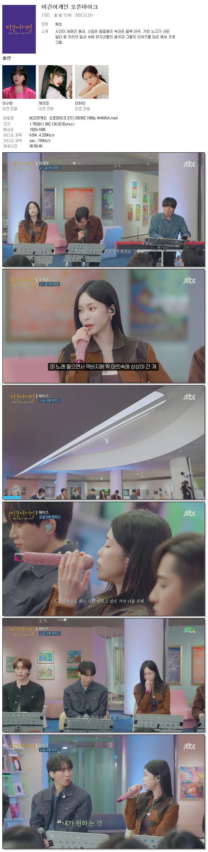 [JTBC] 비긴어게인 오픈마이크.E51.260302.1080p.WANNA[서은광, 박재정]