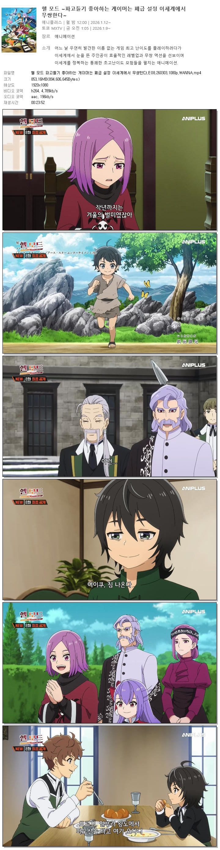 헬 모드 파고들기 좋아하는 게이머는 폐급 설정 이세계에서 무쌍한다.E08.260303.1080p.WANNA.mp4 853.2 M MP4 00:23:52 1920x1080