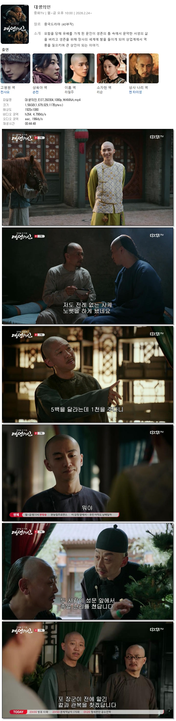 [중화TV] 대생의인.E07.260304.1080p.WANNA[천샤오, 손천]