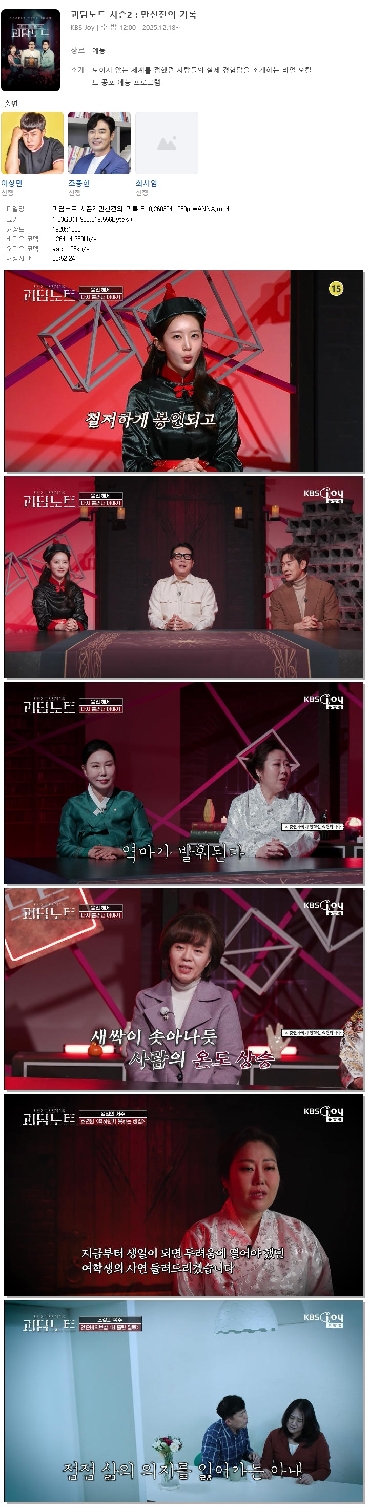 [KBS JOY] 괴담노트 시즌2 만신전의 기록.E10.260304.1080p.WANNA[이상민, 조충현]