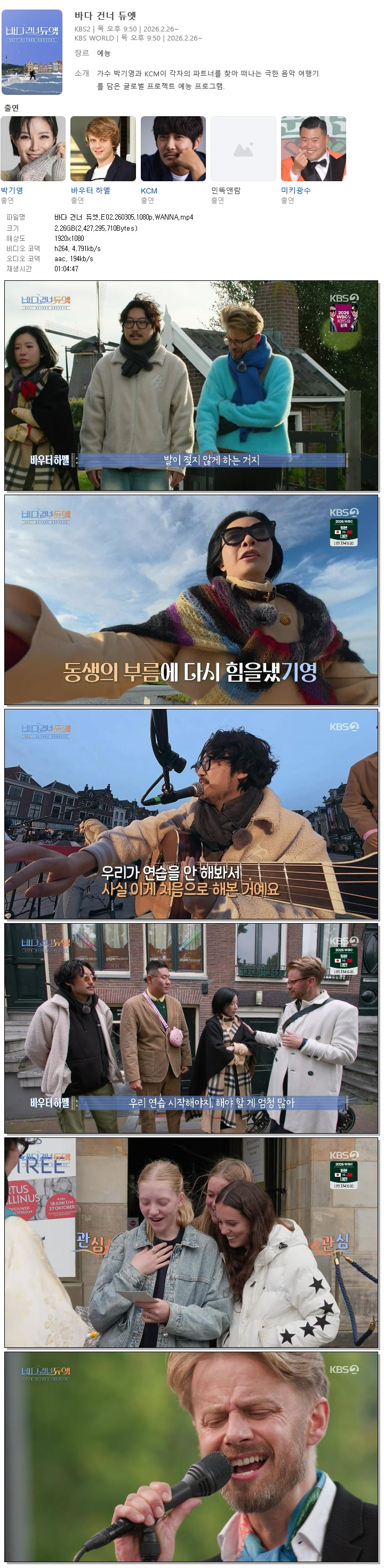 [KBS2] 바다 건너 듀엣.E02.260305.1080p.WANNA[박기영, KCM]