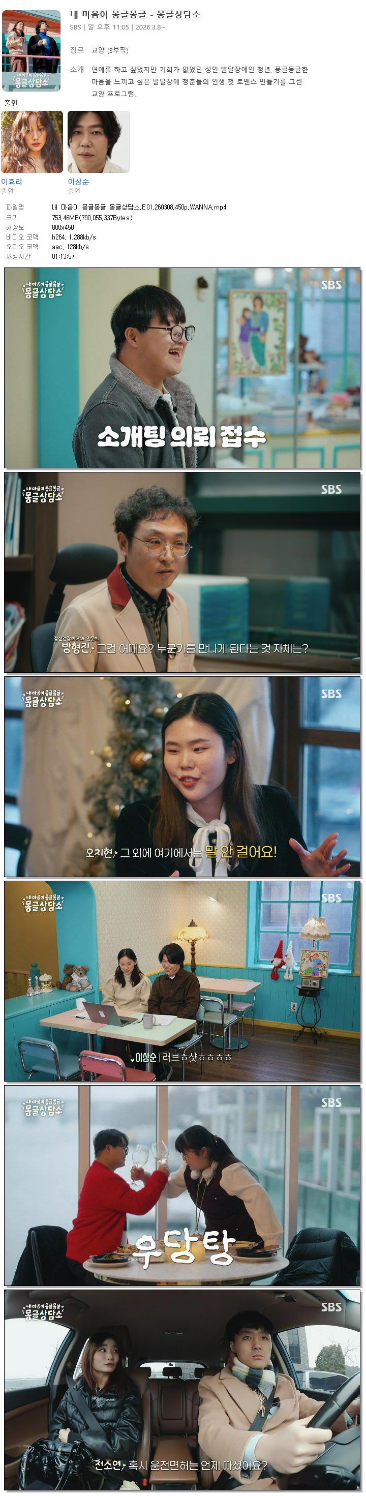 [SBS] 내 마음이 몽글몽글 몽글상담소.E01.260308.450p.WANNA[이효리, 이상순]