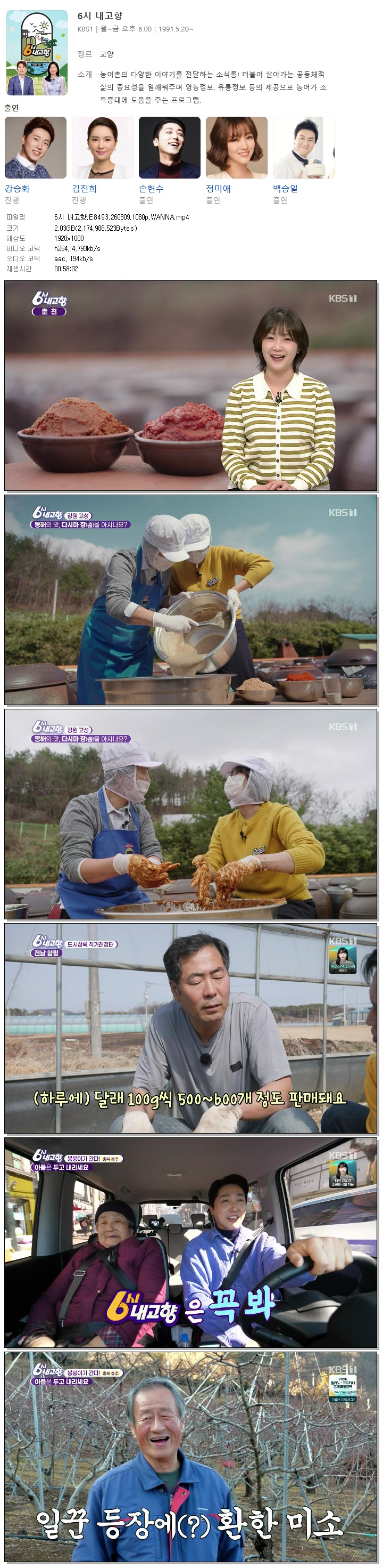 [KBS1] 6시 내고향.E8493.260309.1080p.WANNA[강승화, 김진희]