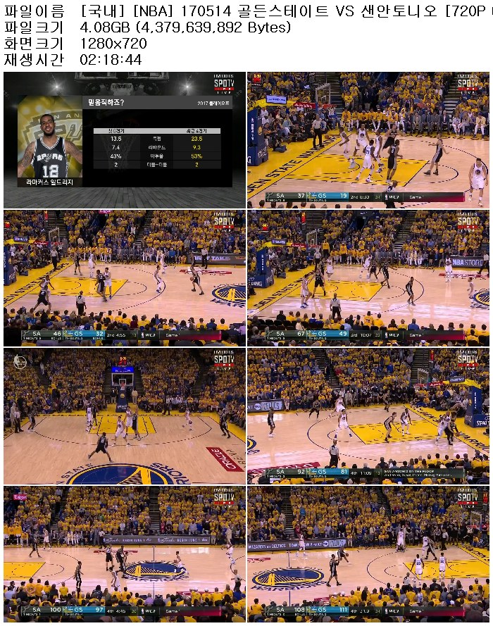 [국내] [NBA] 170515 골든스테이트 VS 샌안토니오 [720P 60F] G1