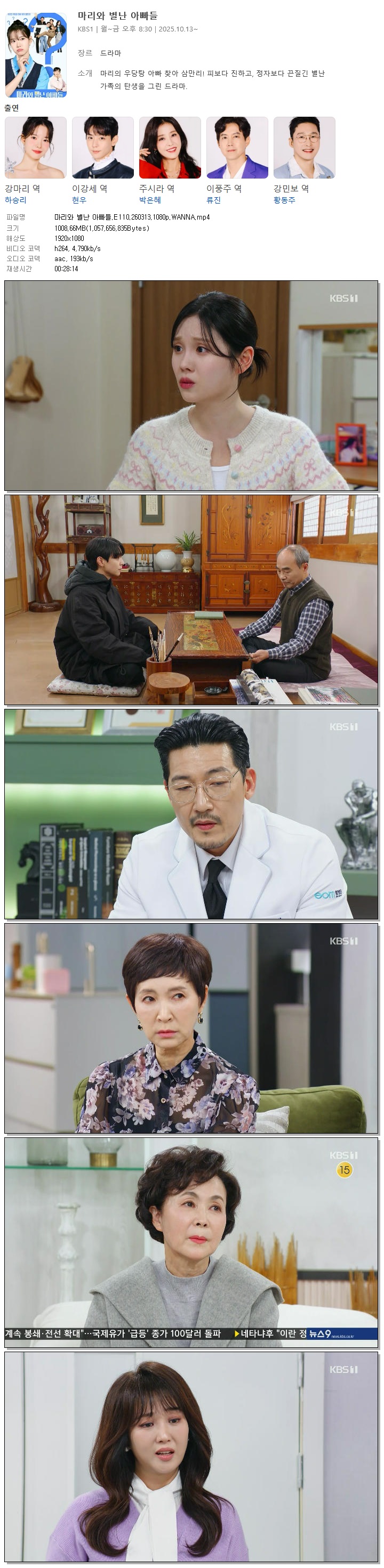 [KBS1] 마리와 별난 아빠들.E110.260313.1080p.WANNA[하승리, 현우]