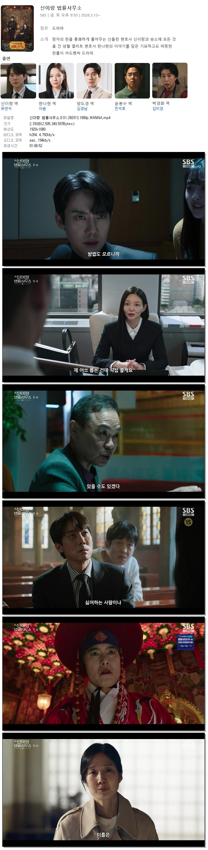 [SBS] 신이랑 법률사무소.E01.260313.1080p.WANNA[유연석, 이솜]