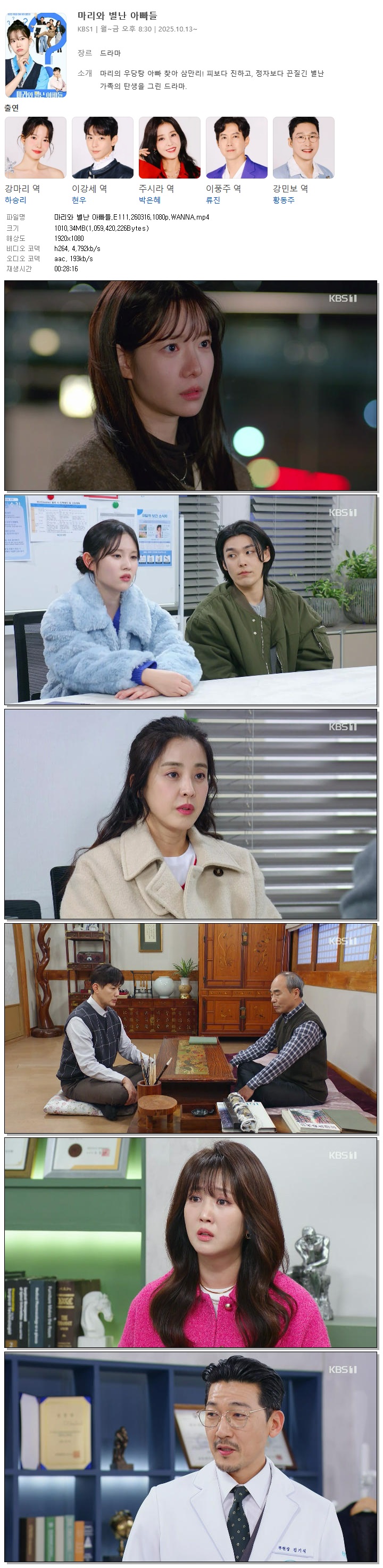 [KBS1] 마리와 별난 아빠들.E111.260316.1080p.WANNA[하승리, 현우]