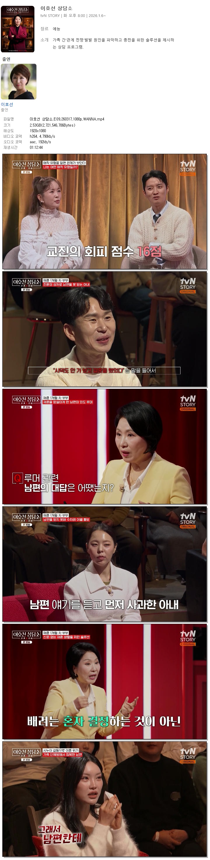 [TVN STORY] 이호선 상담소.E09.260317.1080p.WANNA[이호선]