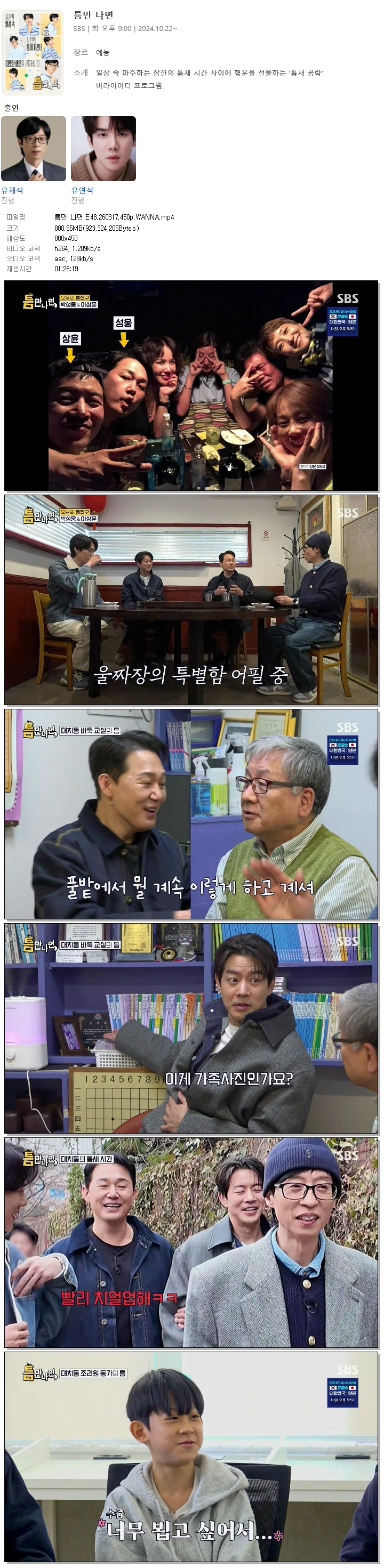 [SBS] 틈만 나면.E48.260317.450p.WANNA[박성웅, 이상윤]