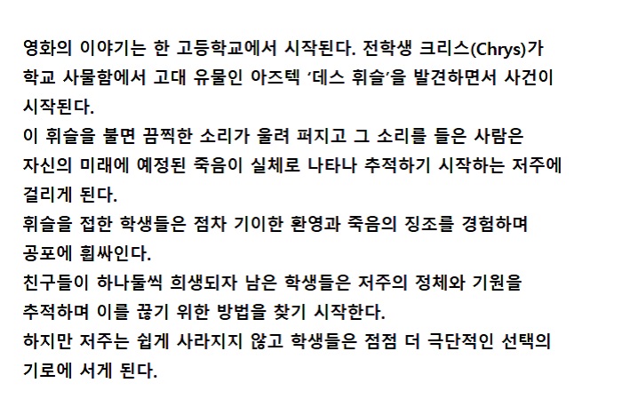 [데스 휘슬] 미래의 죽음이 찾아오는 끔찍한 저주 자체자막/