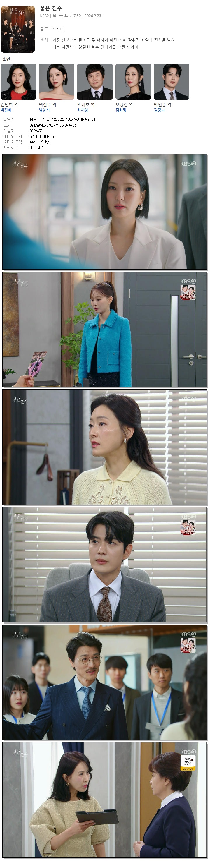[KBS2] 붉은 진주.E17.260320.450p.WANNA[박진희, 남상지]