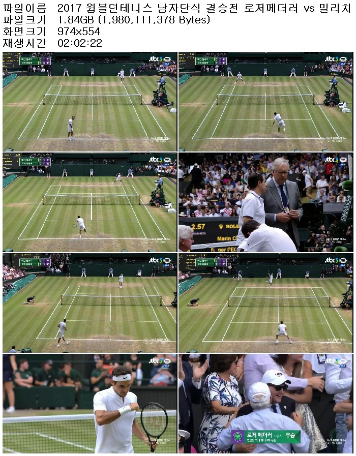 2017 윔블던테니스 남자단식 결승전 로저페더러 vs 밀리치 170717 [국내방송].avi 1.8 G AVI 02:02:22 974x554