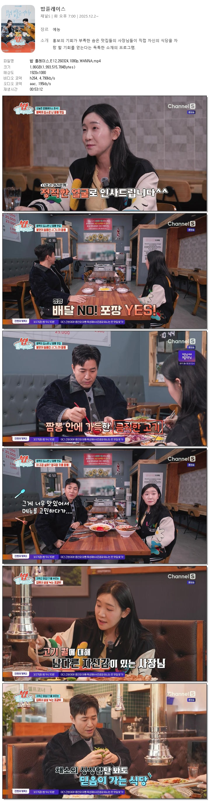 [채널S] 밥 플레이스.E12.260324.1080p.WANNA[김종민, 김지유]