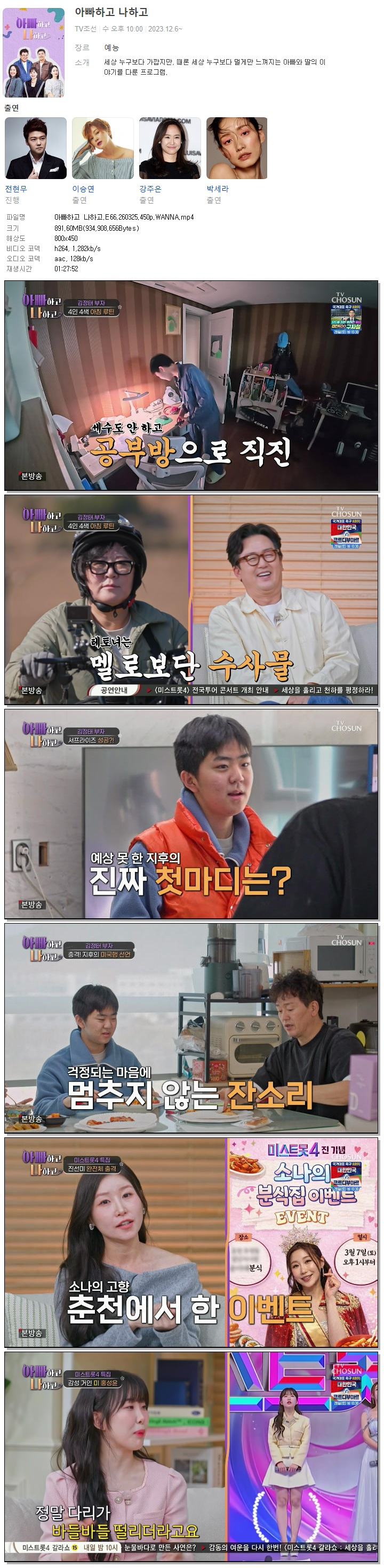 [TV조선] 아빠하고 나하고.E66.260325.450p.WANNA[김정태]