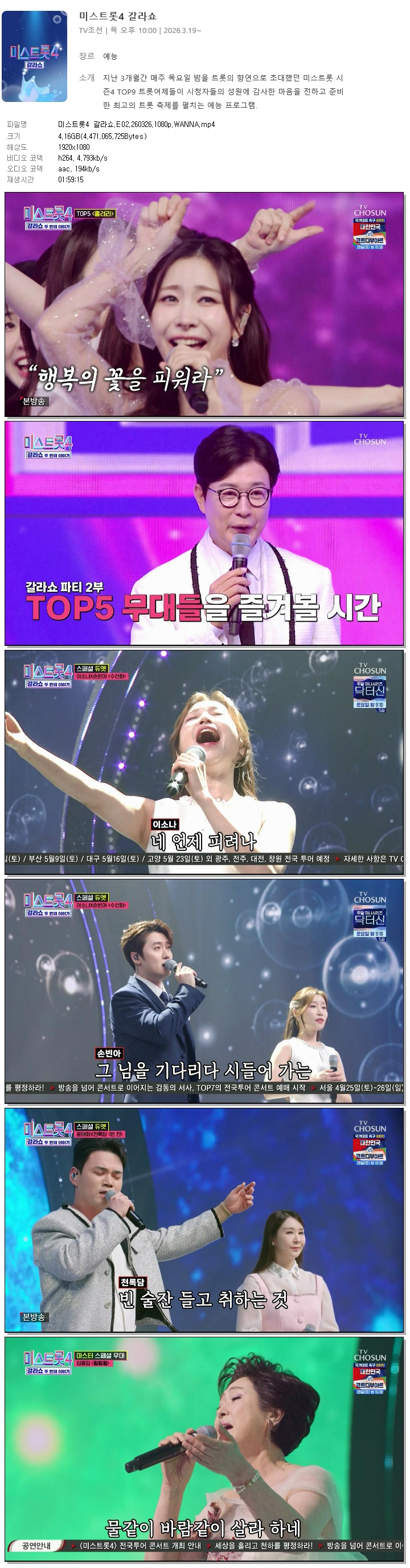 [TV조선] 미스트롯4 갈라쇼.E02.260326.1080p.WANNA[이소나, 허찬미]