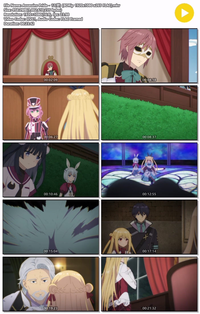 | Assassins Pride - 12(완) [BDRip 1920x1080 x265 FLAC].mkv | 956.2 M | MKV | 00:23:42 | 1920x1080 |