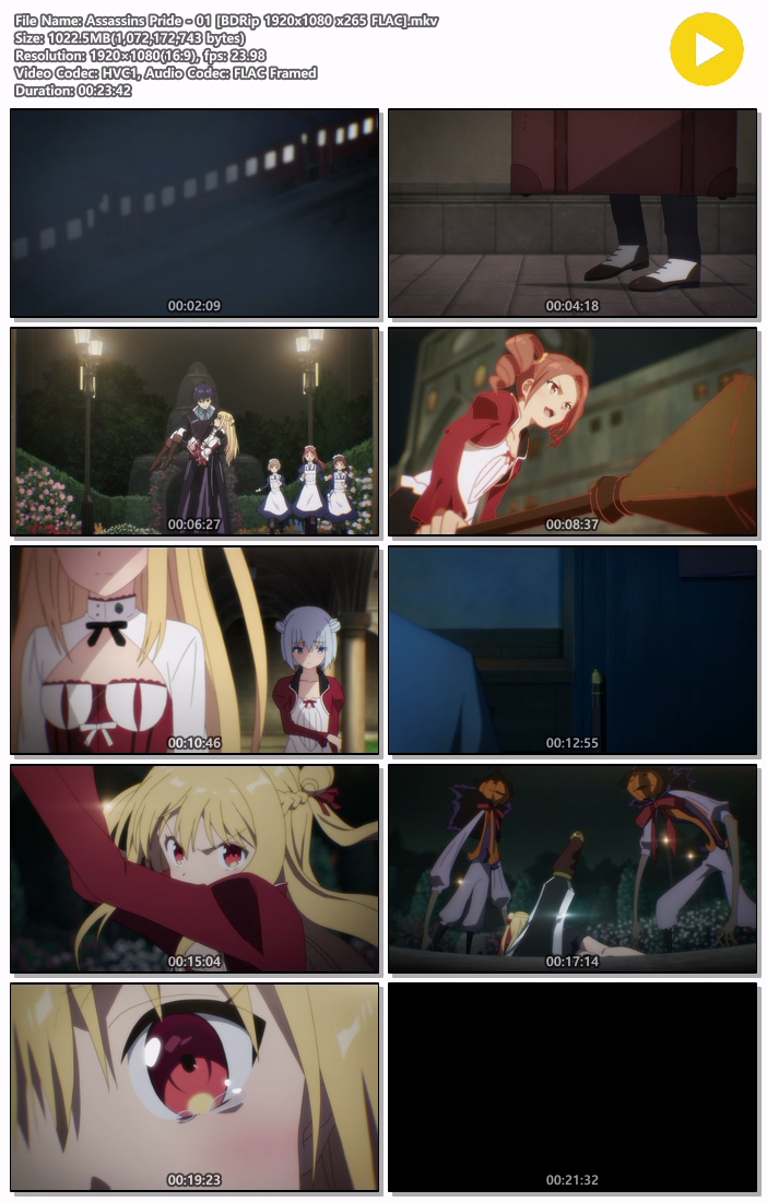 | Assassins Pride - 01 [BDRip 1920x1080 x265 FLAC].mkv | 1022.5 M | MKV | 00:23:42 | 1920x1080 |