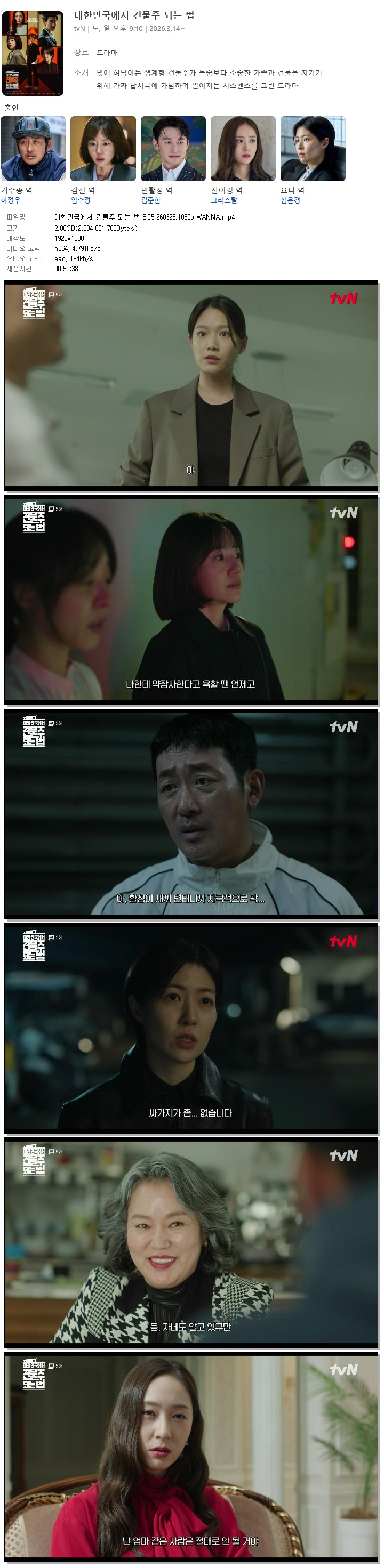 [TVN] 대한민국에서 건물주 되는 법.E05.260328.1080p.WANNA[하정우, 임수정]