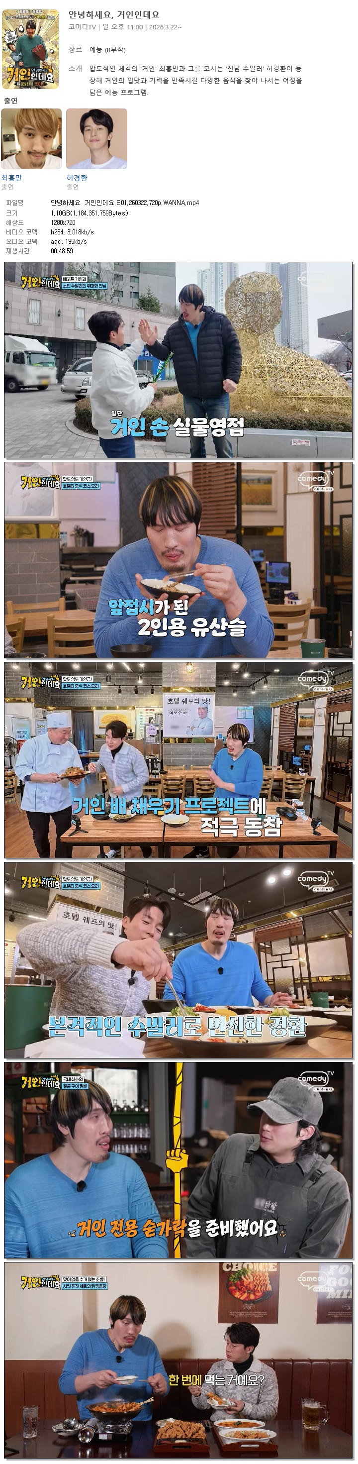 [코미디TV] 안녕하세요 거인인데요.E01.260322.720p.WANNA[최홍만, 허경환]