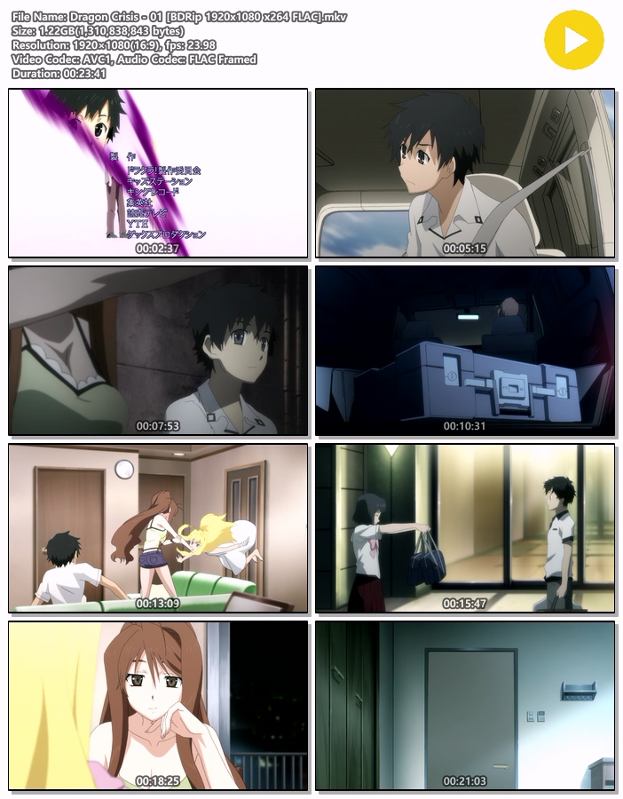 | Dragon Crisis! - 01 [BDRip 1920x1080 x264 FLAC].mkv | 1.2 G | MKV | 00:23:41 | 1920x1080 |