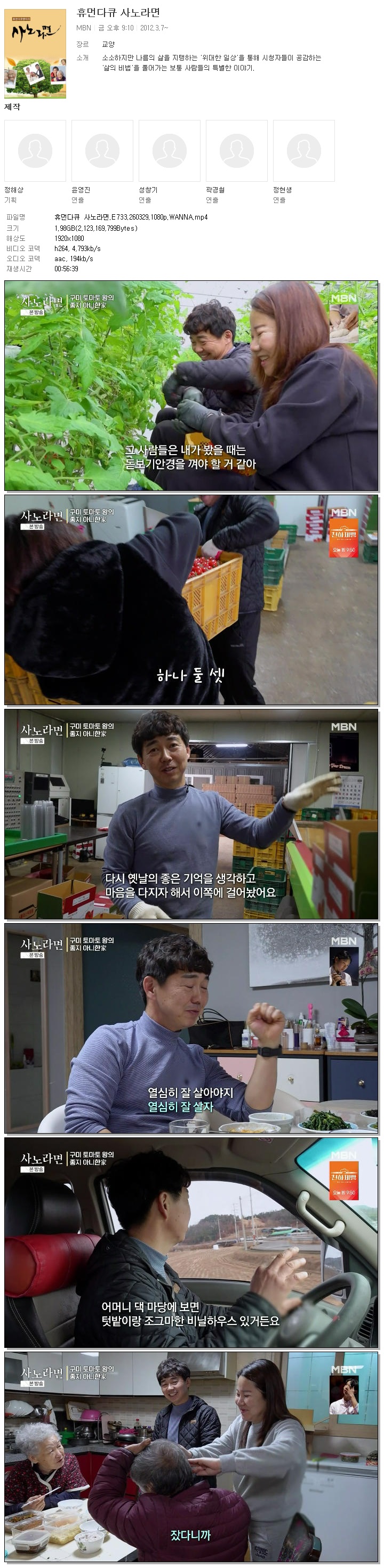 [MBN] 휴먼다큐 사노라면.E733.260329.1080p.WANNA.mp4 2 G MP4 00:56:39 1920x1080