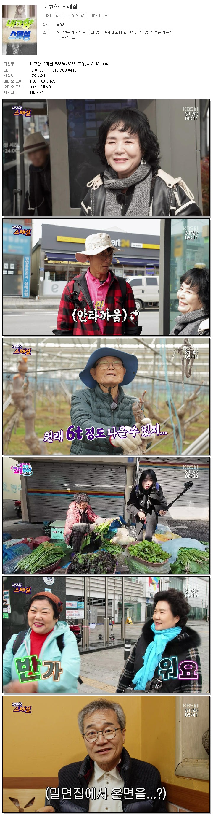 [KBS1] 내고향 스페셜.E2870.260331.720p.WANNA.mp4 1.1 G MP4 00:48:44 1280x720