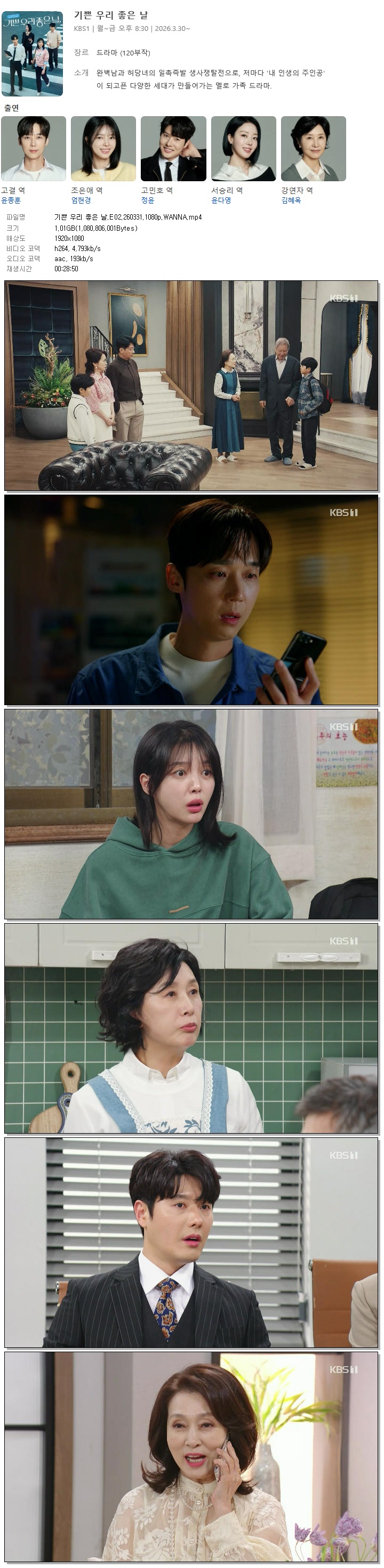[KBS1] 기쁜 우리 좋은 날.E02.260331.1080p.WANNA[윤종훈, 엄현경]
