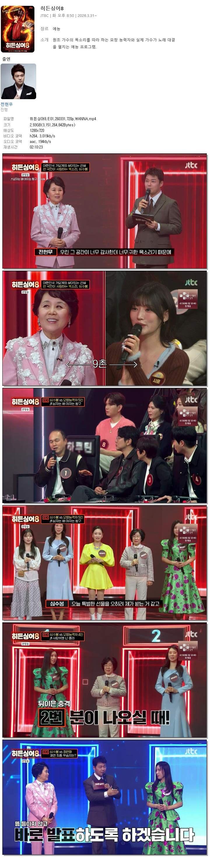 [JTBC] 히든싱어8.E01.260331.720p.WANNA[심수봉, 전현무]