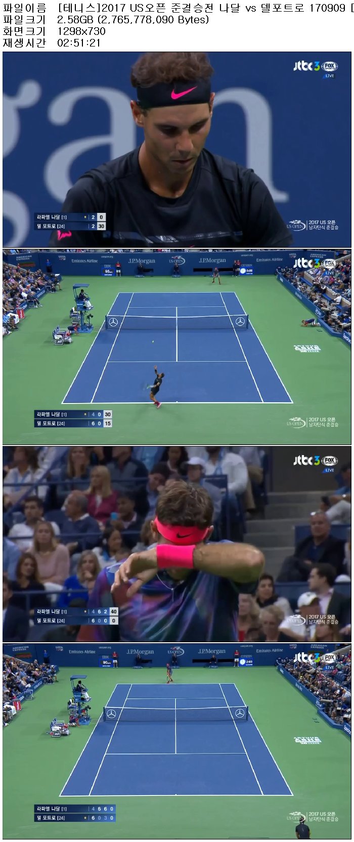 [테니스]2017 US오픈 준결승전 나달 vs 델포트로 170909 [국내방송].avi