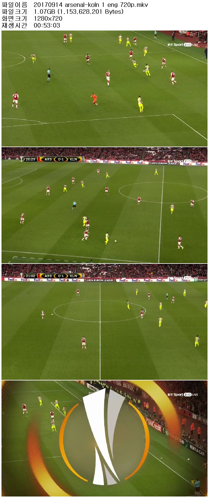 1718시즌 유로파리그 조별예선 아스날 vs 쾰른 170915 [영어해설,고화질,720P]/