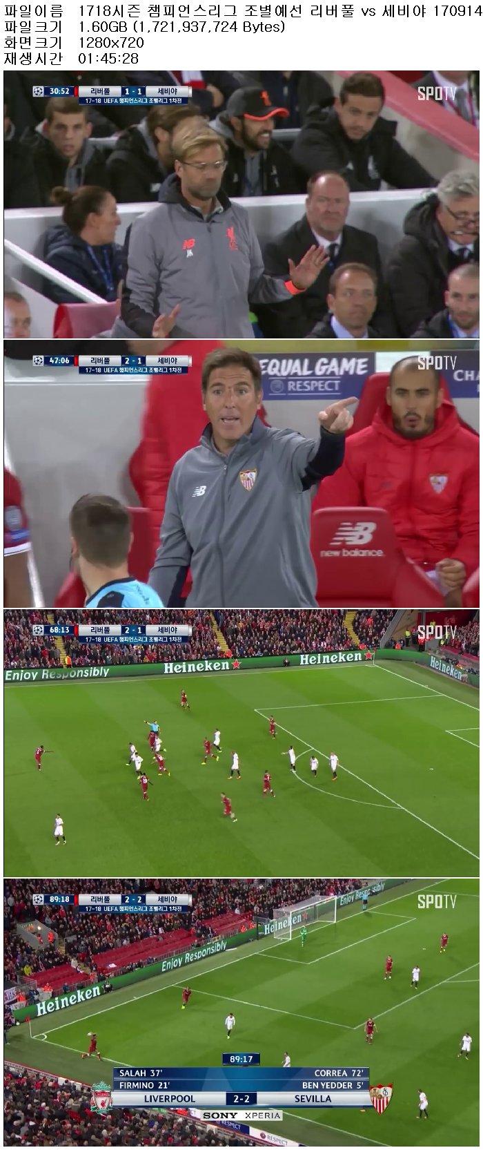 ico1718시즌 챔피언스리그 조별예선 리버풀 vs 세비야 170914 [국내방송,고화질,720P]/
