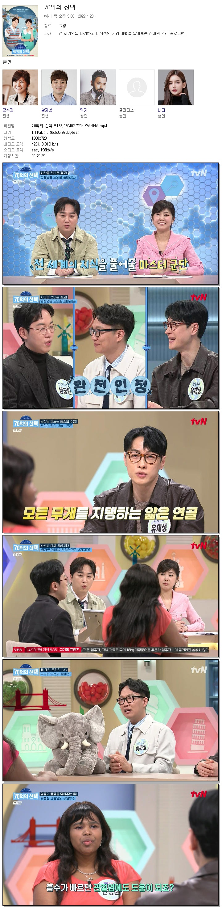 [TVN] 70억의 선택.E186.260402.720p.WANNA[강수정, 황제성].mp4 1.1 G MP4 00:49:29 1280x720