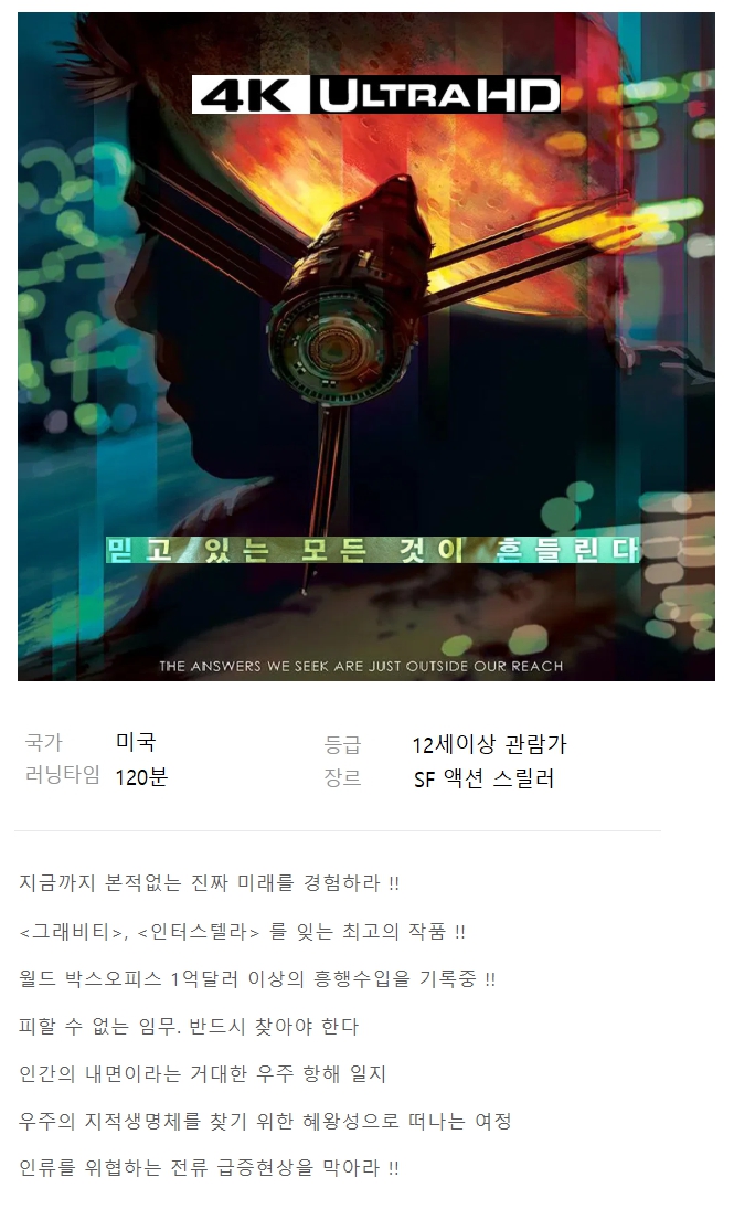 [4K UHD] 새로운 SF 미래의 시작을 경험하라- 공식자막 초고화질 Dolby5.1