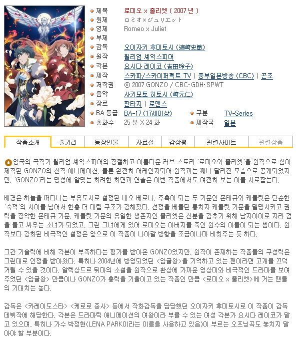 | Romeo × Juliet - 24(완) [DVDRip 1024x576].mkv | 350.6 M | MKV | 00:23:09 | 1024x576 |
