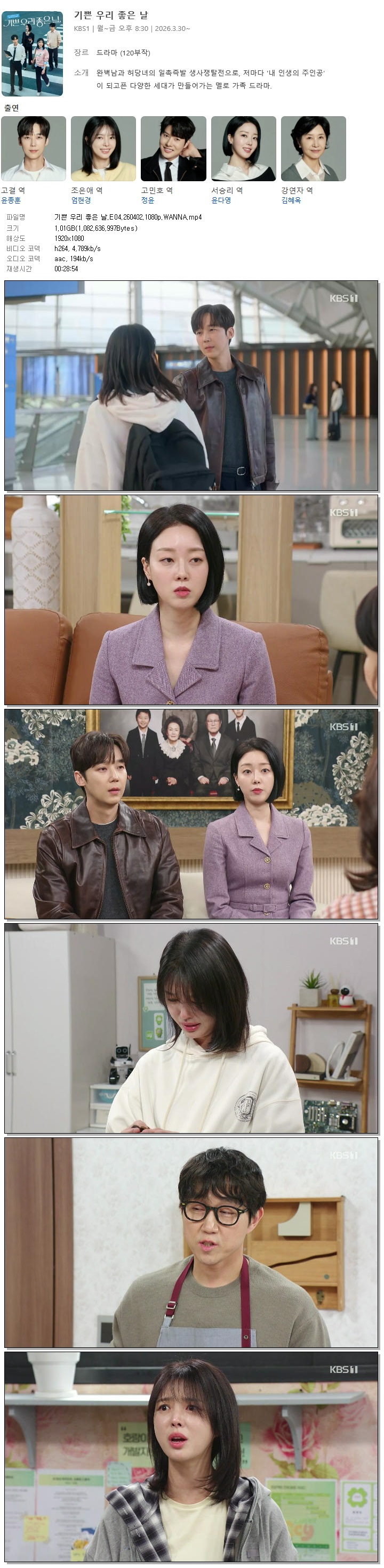 [KBS1] 기쁜 우리 좋은 날.E04.260402.1080p.WANNA[윤종훈, 엄현경]
