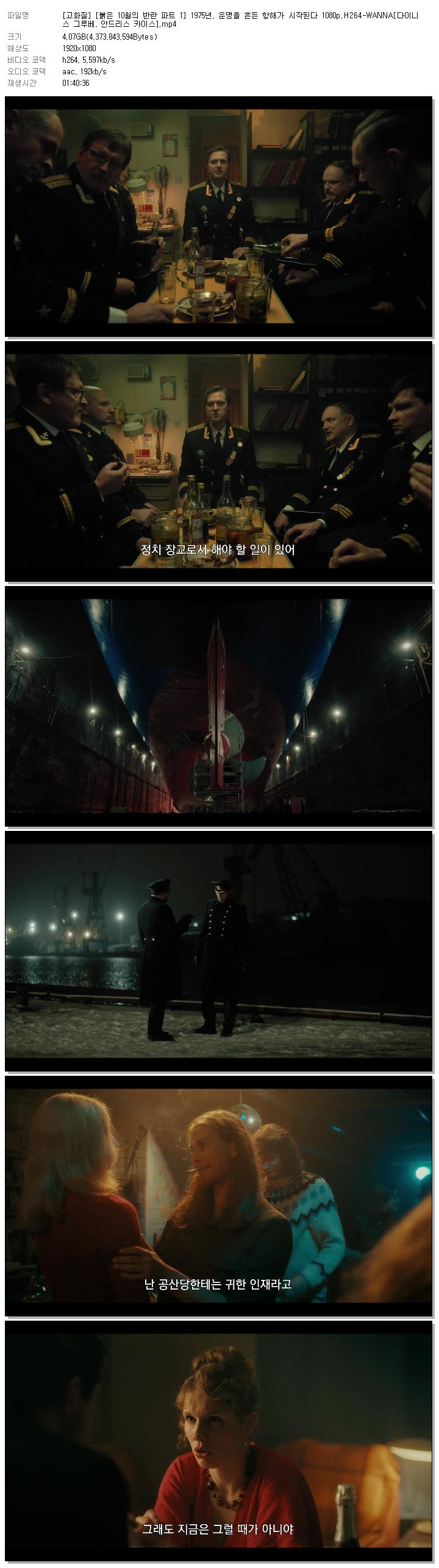 | [고화질] [붉은 10월의 반란 파트 1] 1975년, 운명을 흔든 항해가 시작된다 1080p.H264-WANNA[다이니스 그루베, 안드리스 카이스].mp4 | 4.1 G | MP4 | 01:40:36 | 1920x1080 |