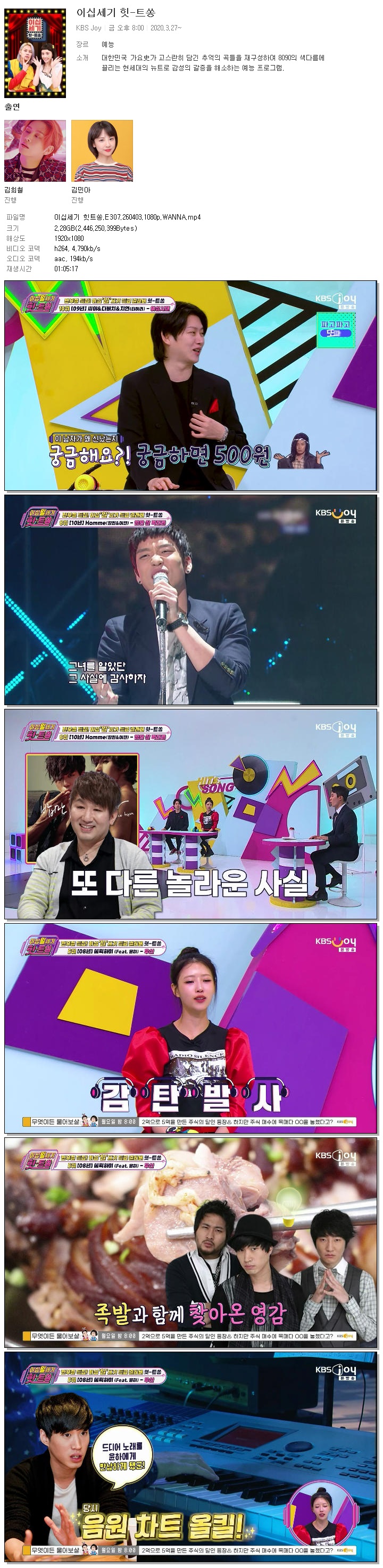 [KBS JOY] 이십세기 힛트쏭.E307.260403.1080p.WANNA[김희철, 미주]