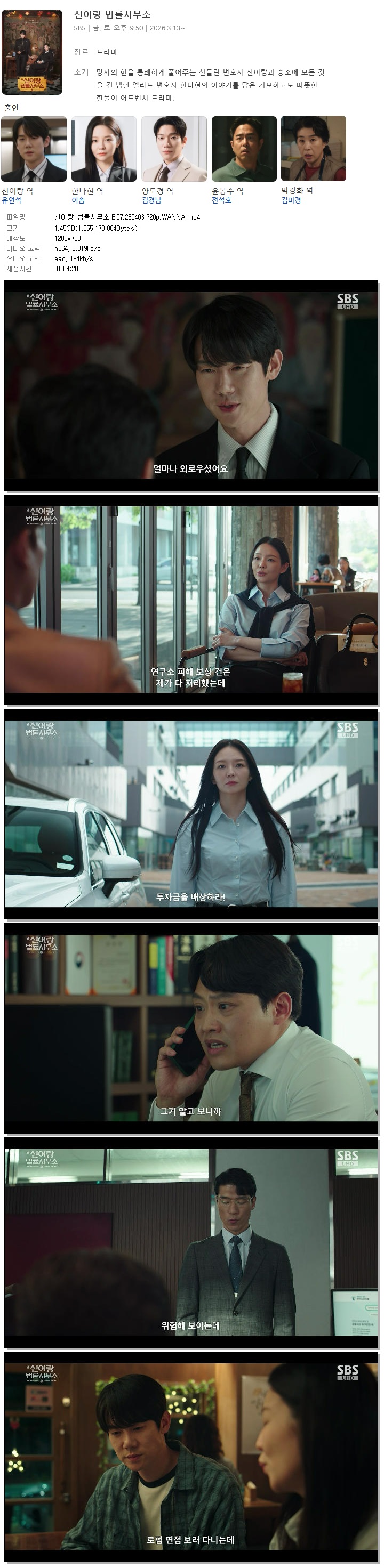[SBS] 신이랑 법률사무소.E07.260403.720p.WANNA[유연석, 이솜]
