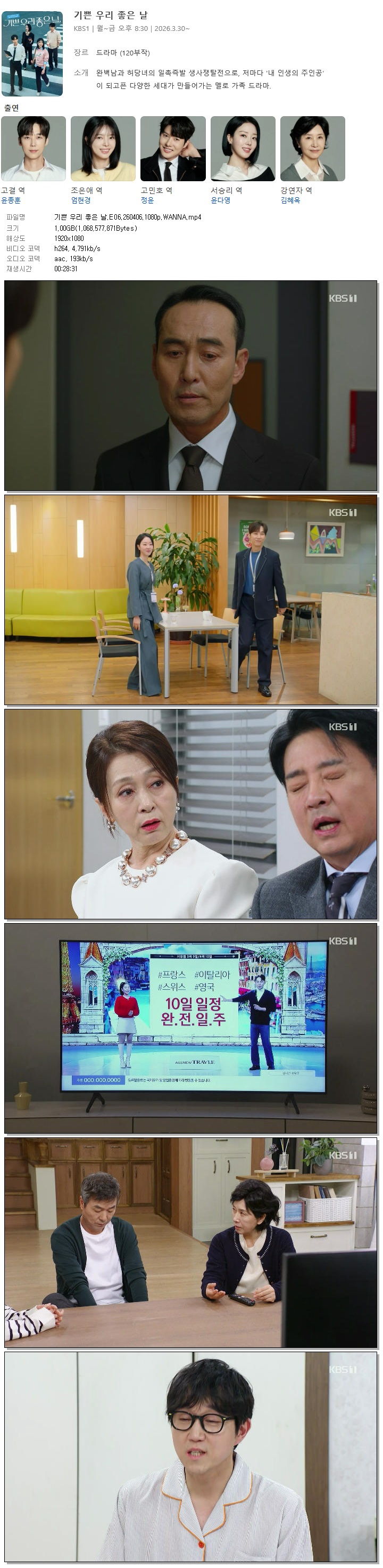 [KBS1] 기쁜 우리 좋은 날.E06.260406.1080p.WANNA[윤종훈, 엄현경]