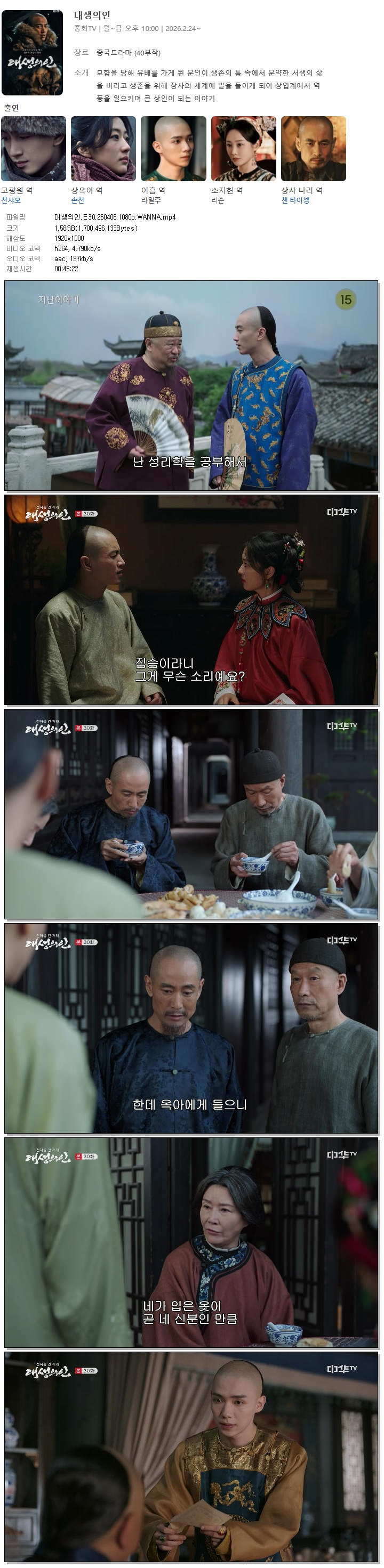 [중화TV] 대생의인.E30.260406.1080p.WANNA[천샤오, 손천]