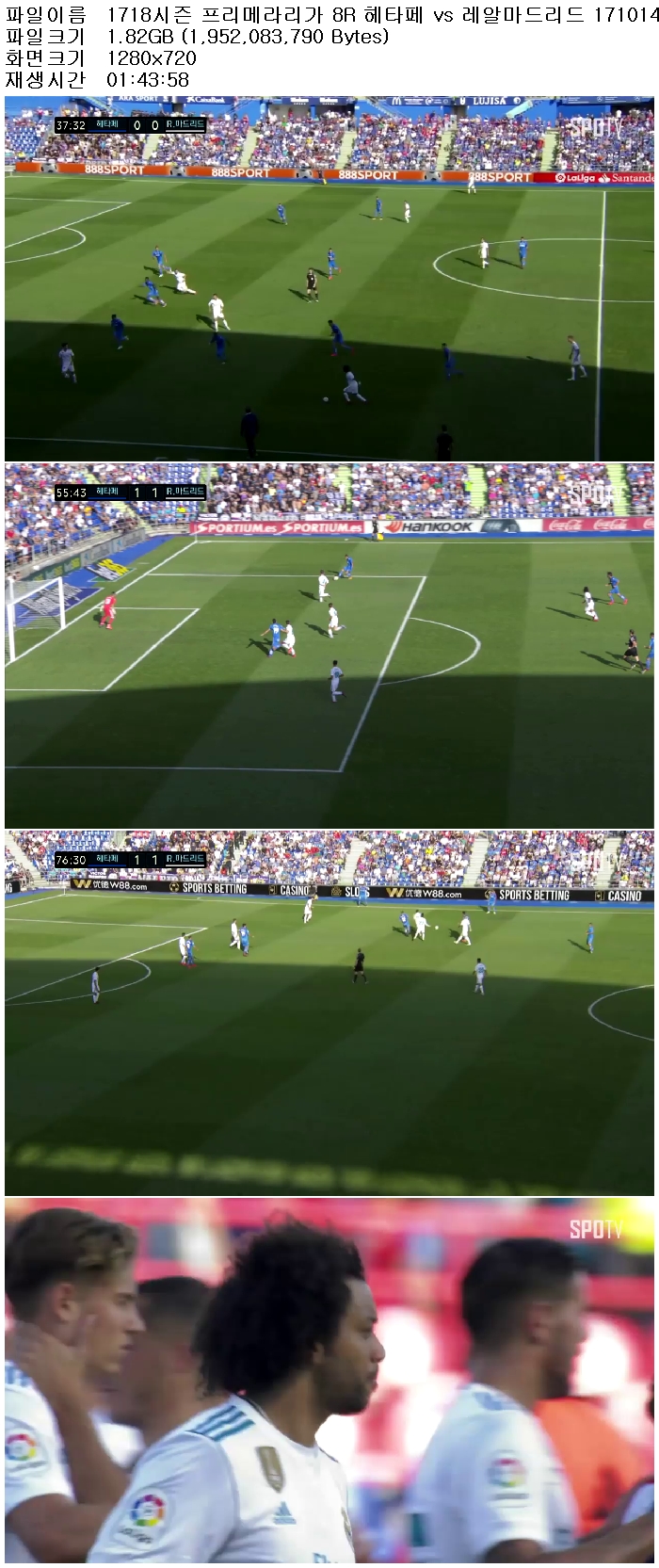 1718시즌 프리메라리가 8R 헤타페 vs 레알마드리드 171014 [국내방송,고화질,720P]