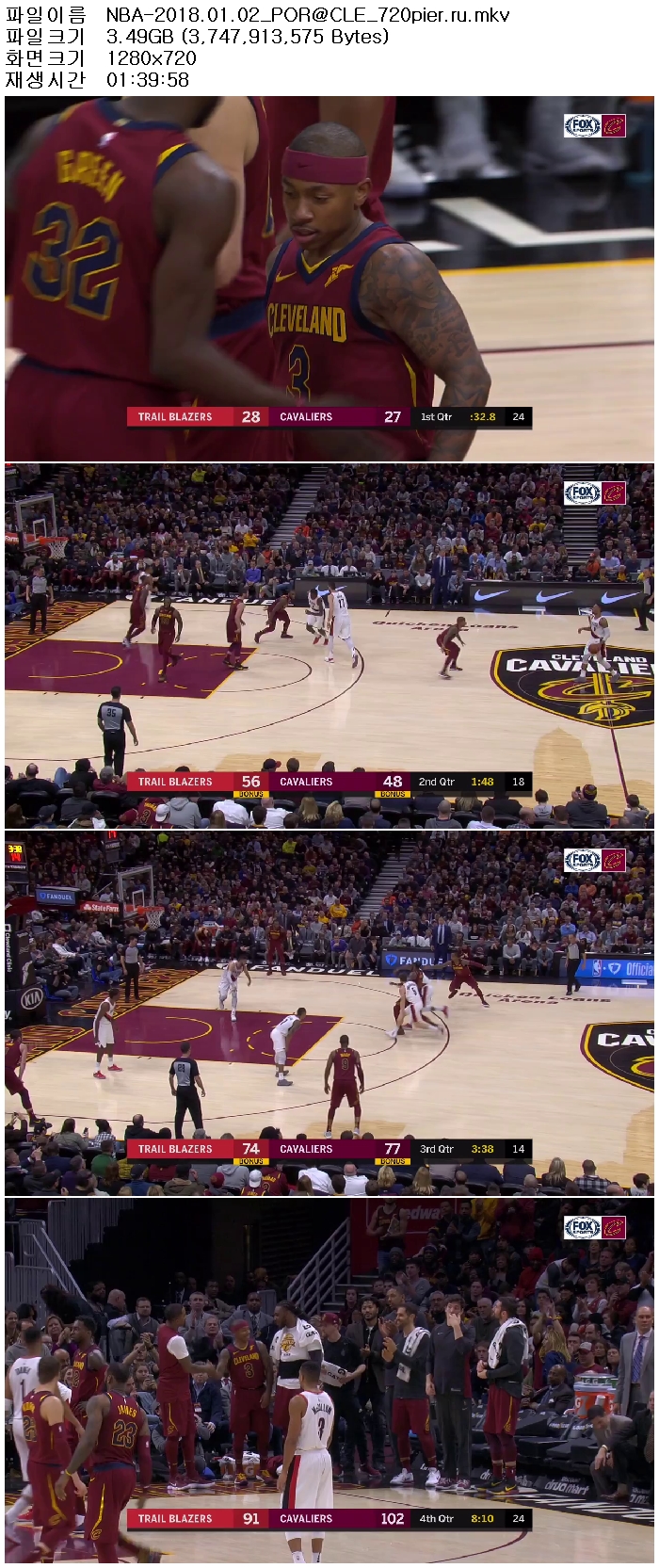 [NBA]1718시즌 클리블랜드 vs 포틀랜드 180103 [초고화질,720P60fps]