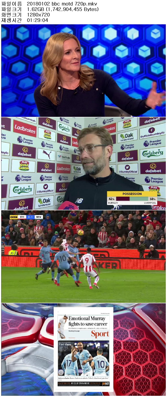 1718시즌 프리미어리그 22라운드 하이라이트MOTD 180102[영어해설,고화질,720P]