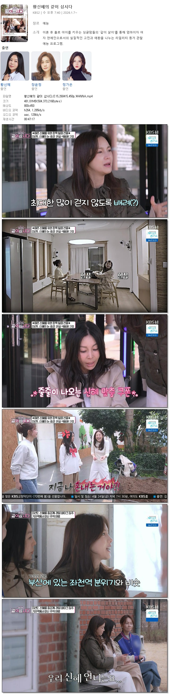 [KBS1] 황신혜의 같이 삽시다.E15.260415.450p.WANNA[황신혜, 정가은]