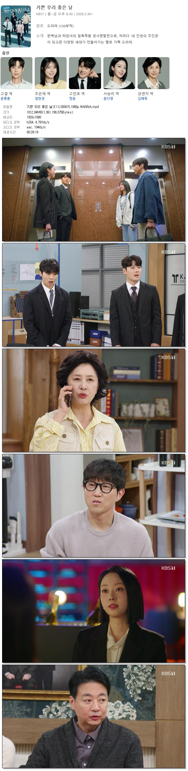 [KBS1] 기쁜 우리 좋은 날.E13.260415.1080p.WANNA[윤종훈, 엄현경]