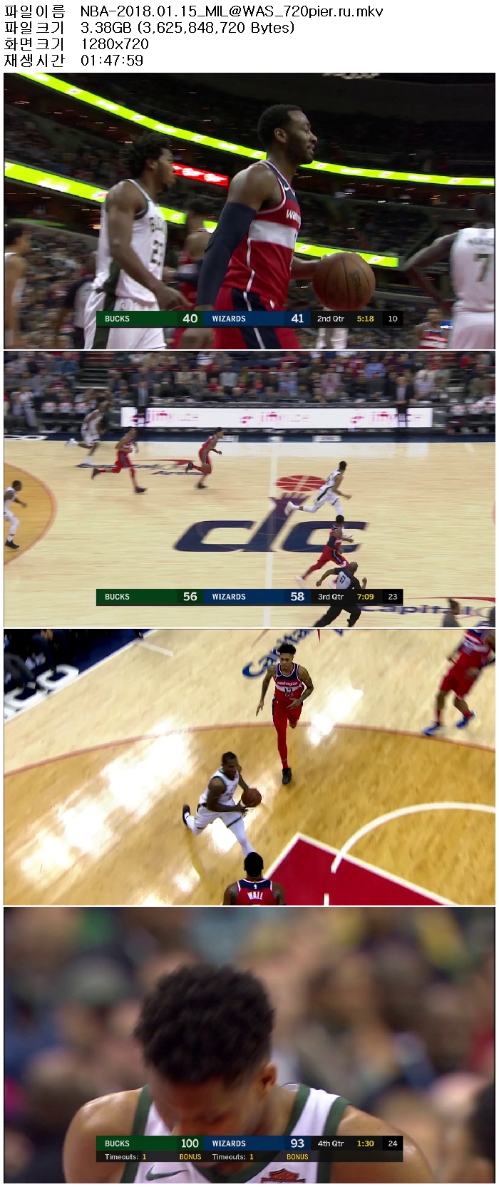 [NBA]1718시즌 워싱턴 vs 밀워키 180116 [초고화질,720P60fps]