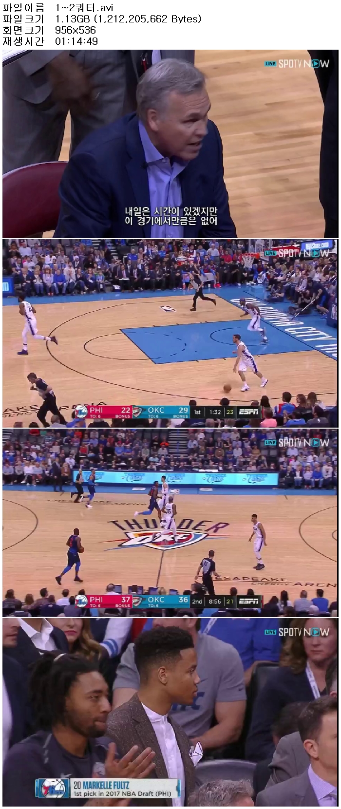 [NBA]1718시즌 오클라호마 vs 필라델피아 180129 [국내방송]/
